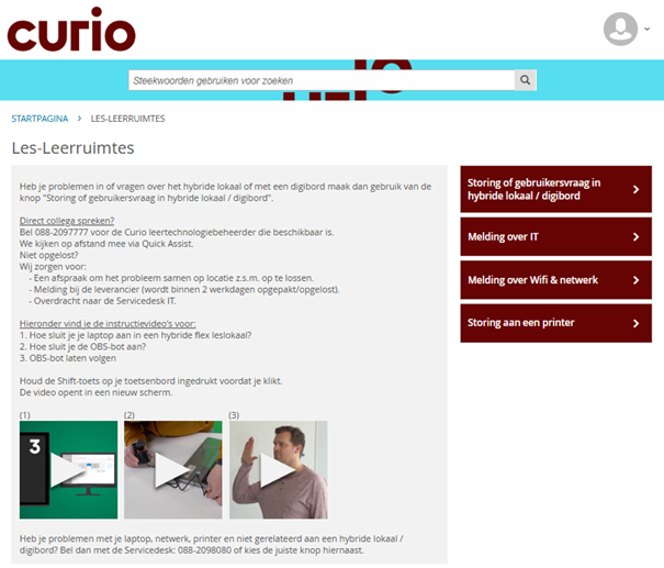 Heb je een vraag of wil je melding maken van een probleem of een wens aan Curio IT en facilitair dan gebruik je Topdesk. Binnen Topdesk vind je ook huidige storingen en IT-handleidingen
